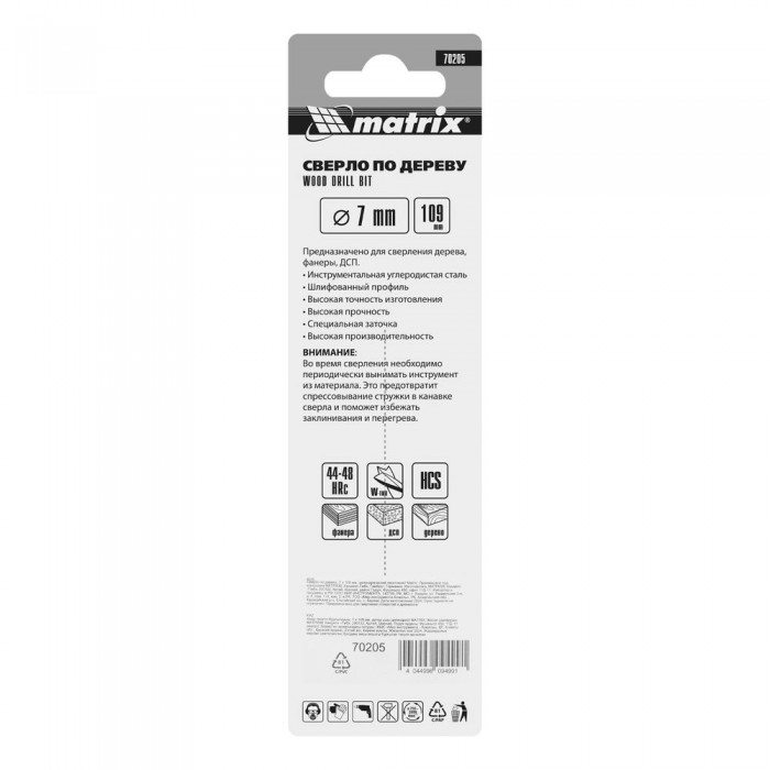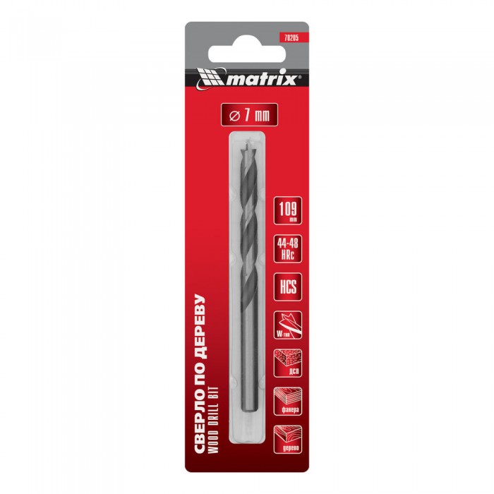 Сверло по дереву, 7 x 109 мм, цилиндрический хвостовик Matrix