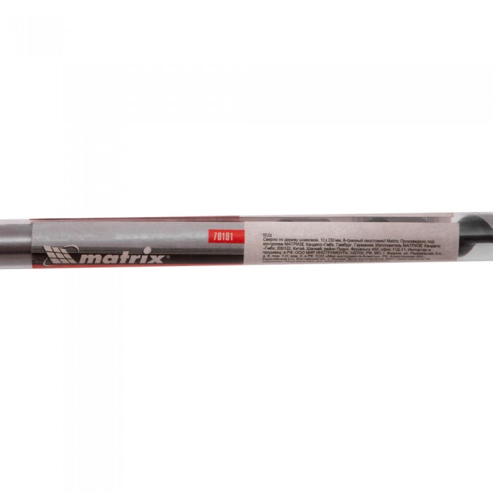 Сверло по дереву шнековое, 10 х 230 мм, шестигранный хвостовик Matrix