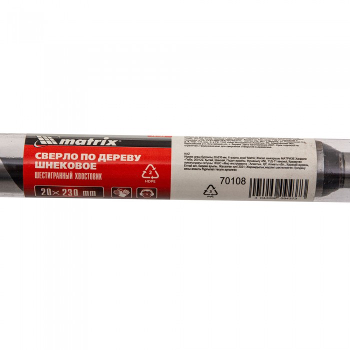Сверло по дереву шнековое, 20 х 230 мм, шестигранный хвостовик Matrix