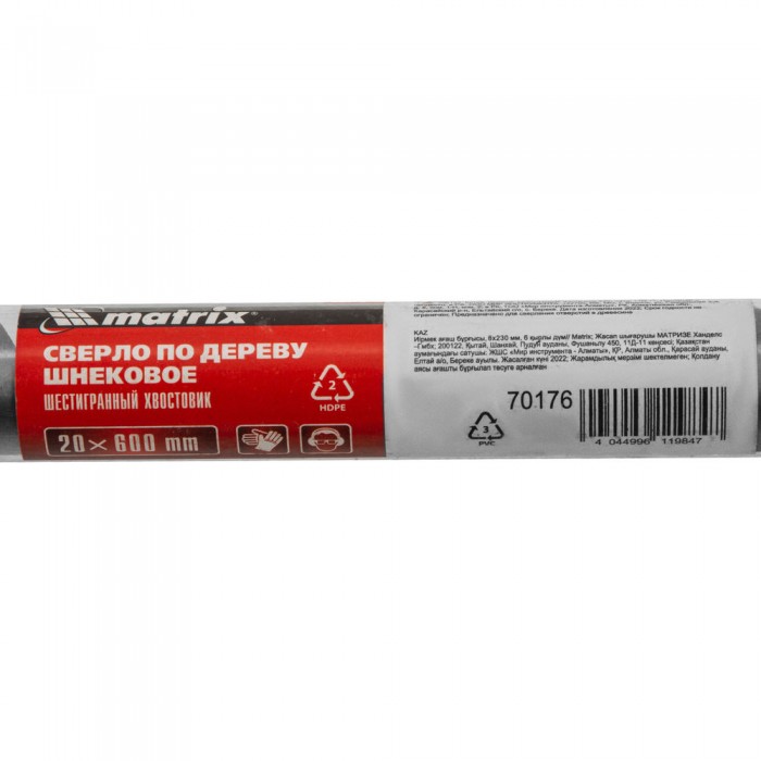 Сверло по дереву шнековое, 20 х 600 мм, шестигранный хвостовик Matrix