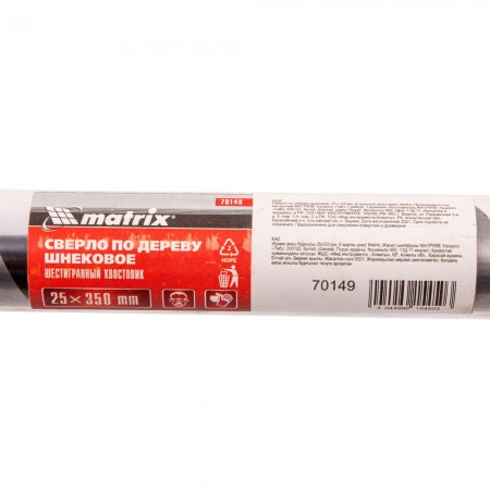 Сверло по дереву шнековое, 25 х 350 мм, шестигранный хвостовик Matrix