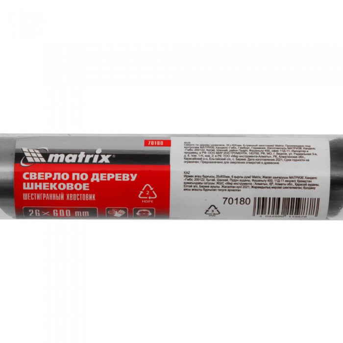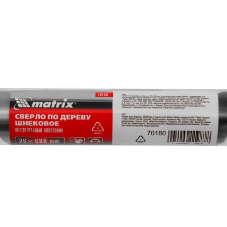Сверло по дереву шнековое, 26 х 600 мм, шестигранный хвостовик Matrix