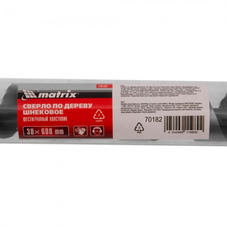 Сверло по дереву шнековое, 30 х 600 мм, шестигранный хвостовик Matrix