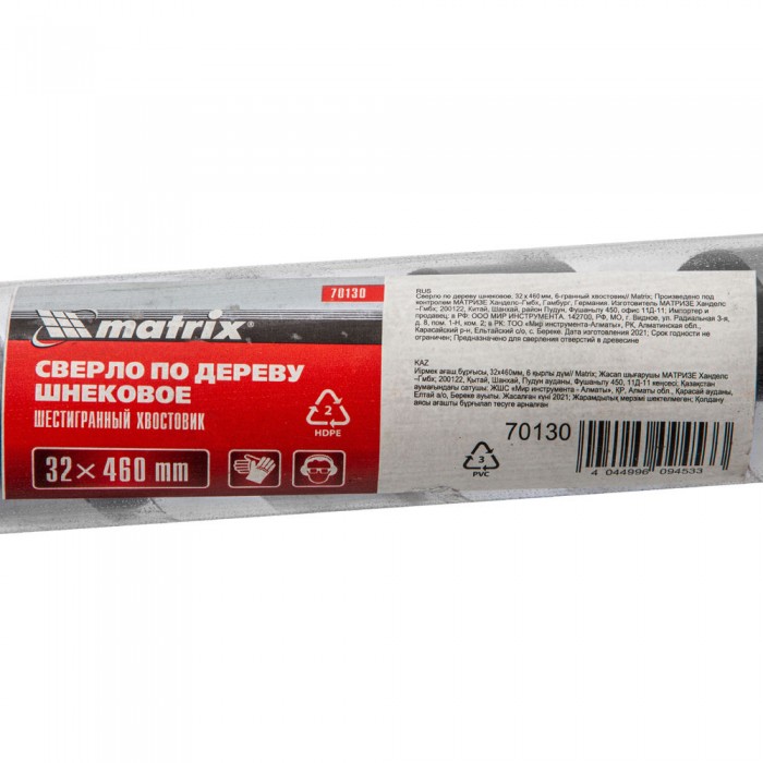 Сверло по дереву шнековое, 32 х 460 мм, шестигранный хвостовик Matrix