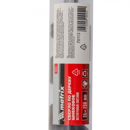 Сверло по дереву шнековое, 35 х 230 мм, шестигранный хвостовик Matrix