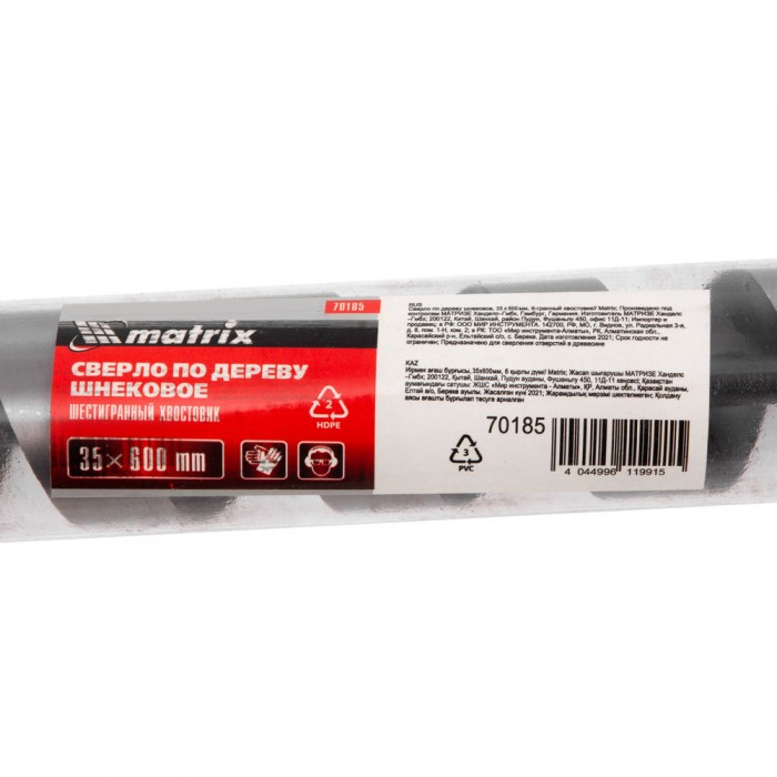 Сверло по дереву шнековое, 35 х 600 мм, шестигранный хвостовик Matrix