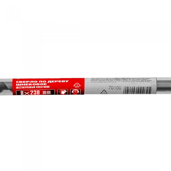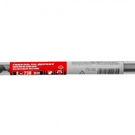 Сверло по дереву шнековое, 8 х 230 мм, шестигранный хвостовик Matrix