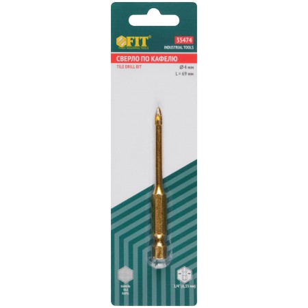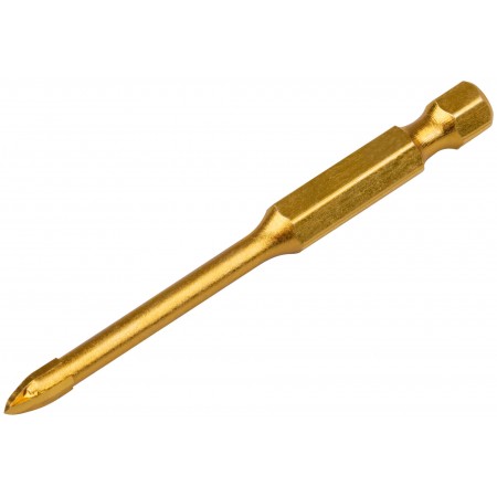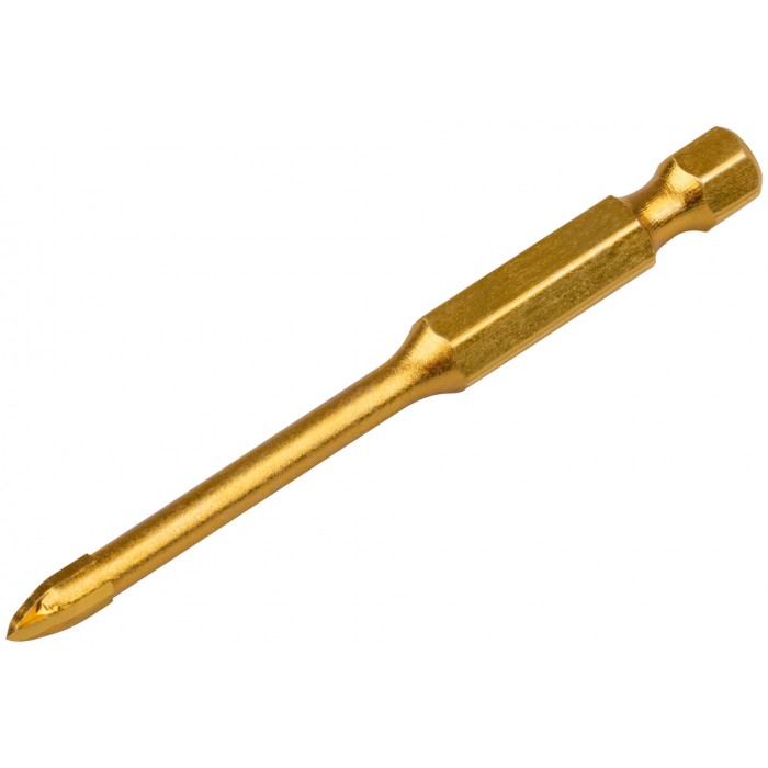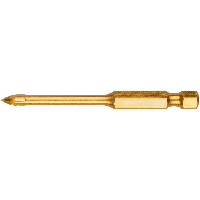 Сверло по кафелю, 4 режущие кромки, титановое покрытие, U-хвостовик под биту 4х69 мм (35474)