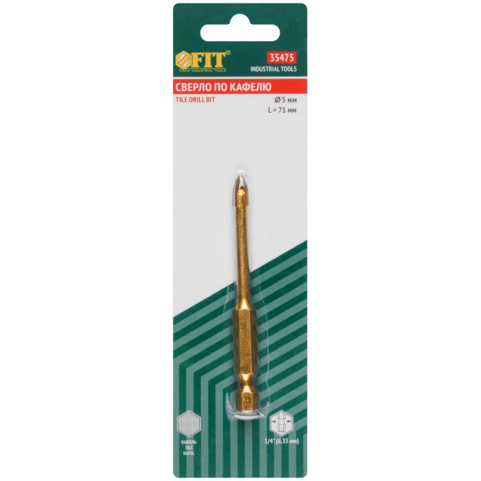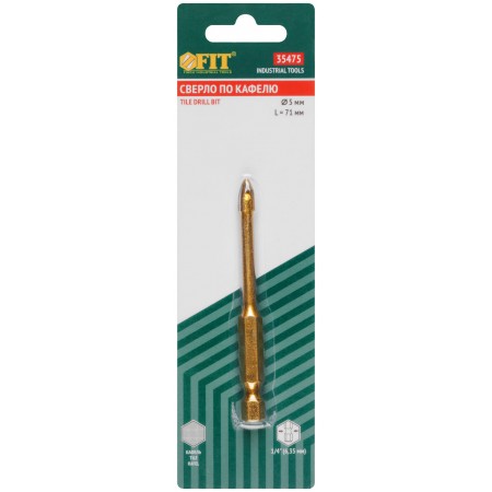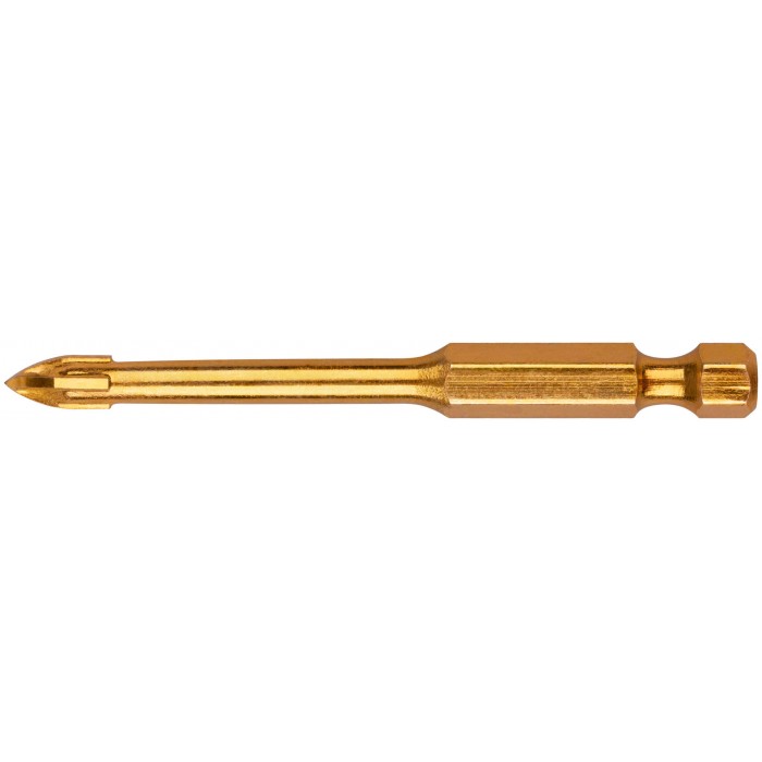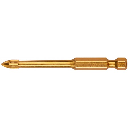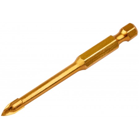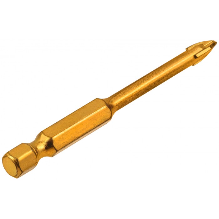 Сверло по кафелю, 4 режущие кромки, титановое покрытие, U-хвостовик под биту 5х71 мм (35475)