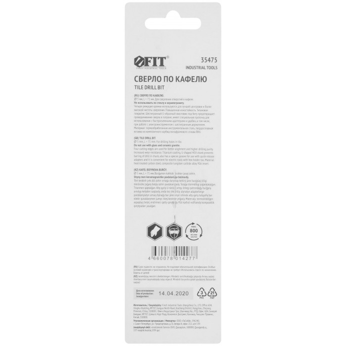 U-образный хвостовик под биту. Четыре режущие кромки. Для сверления отверстий в кафельной плитке. Повышенная производительность. Материал: инструментальная сталь с титановым покрытием, твердосплавные вставки. Упаковка: блистер.