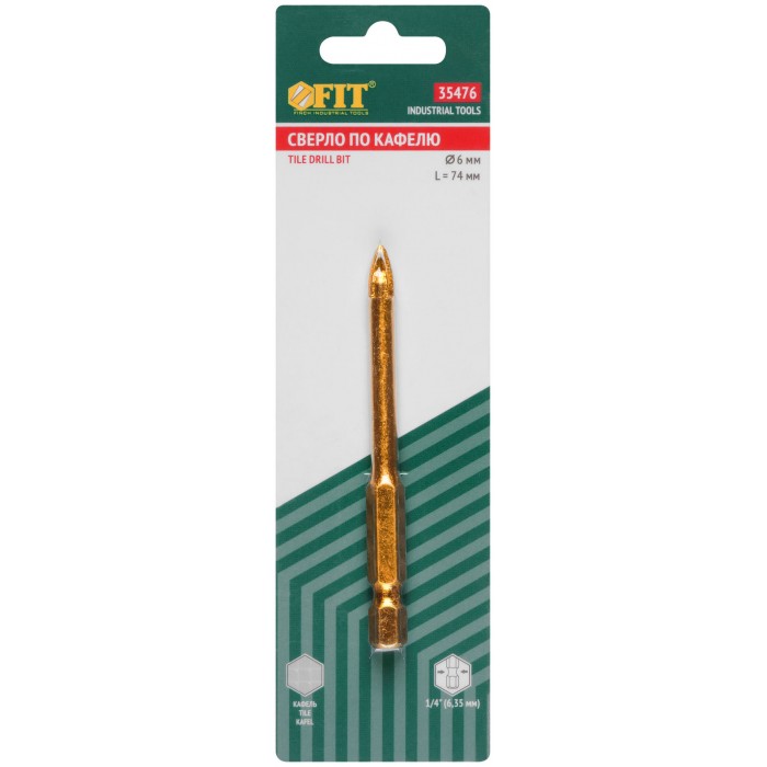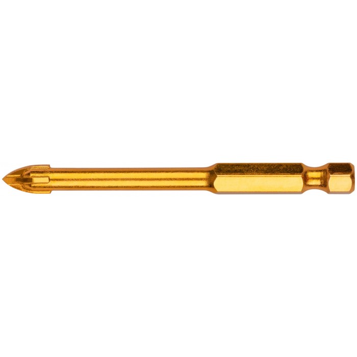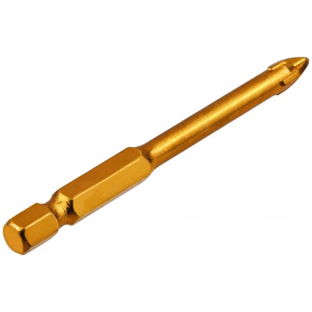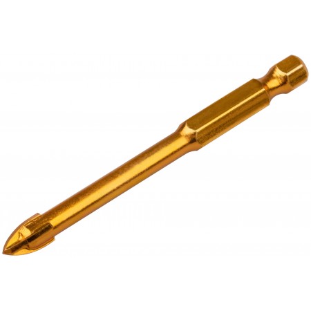 Сверло по кафелю, 4 режущие кромки, титановое покрытие, U-хвостовик под биту 6х74 мм (35476)