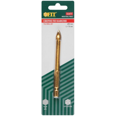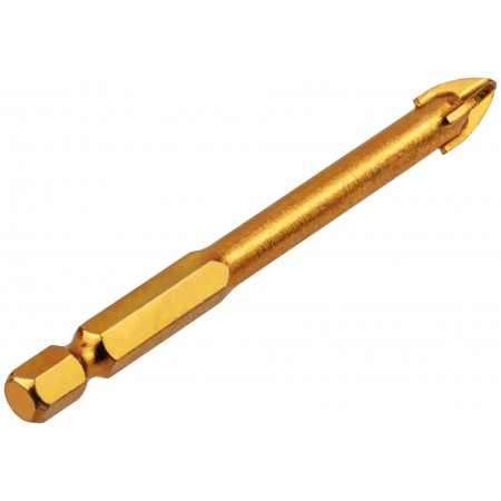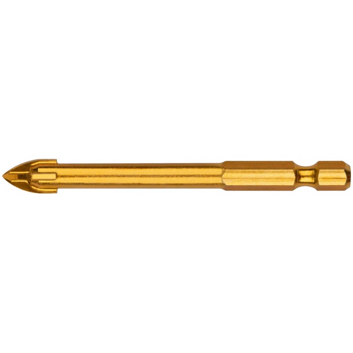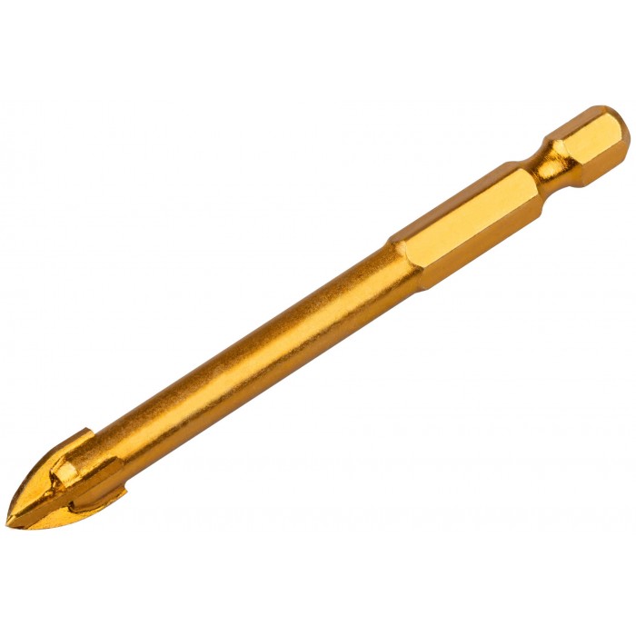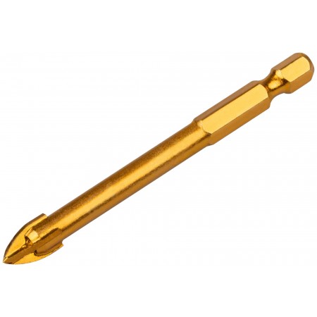 Сверло по кафелю, 4 режущие кромки, титановое покрытие, U-хвостовик под биту 8х76 мм (35477)