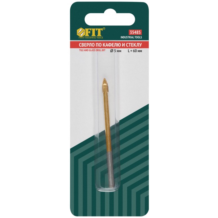 Сверло по кафелю и стеклу, 4 режущие кромки, титановое покрытие 5х60 мм (35485)
