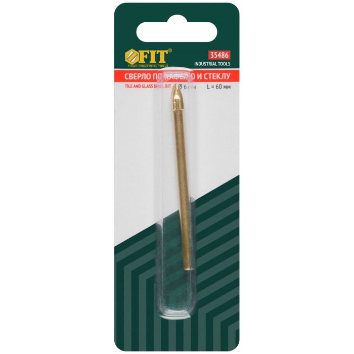 Сверло по кафелю и стеклу, 4 режущие кромки, титановое покрытие 6х60 мм (35486)