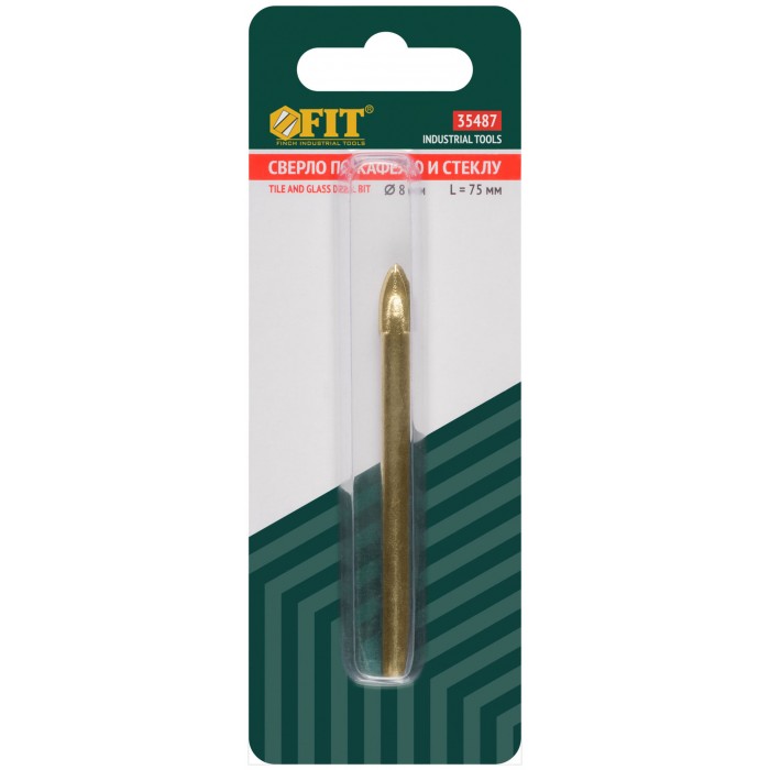 Сверло по кафелю и стеклу, 4 режущие кромки, титановое покрытие 8х75 мм (35487)