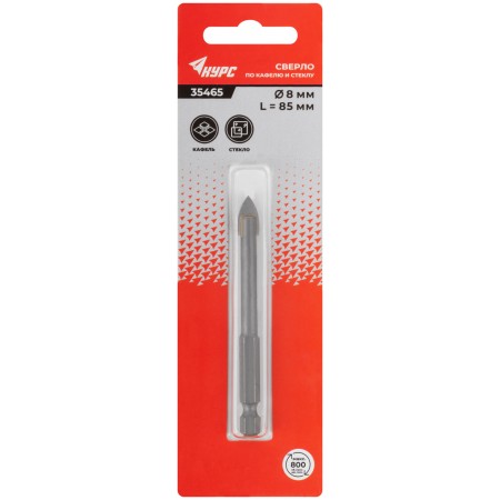 Сверло по кафелю и стеклу, шестигранный U-хвостовик под биту 8х85 мм (35465)