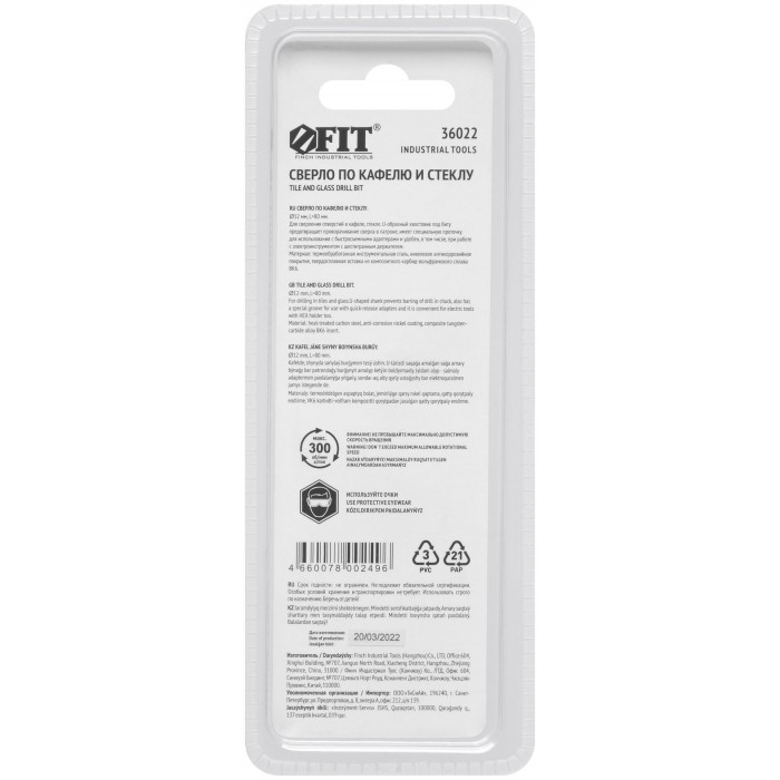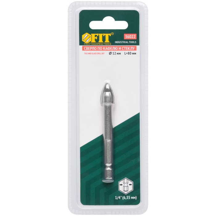 Сверло по кафелю, шестигранный U-хвостовик под биту 12 мм (36022)