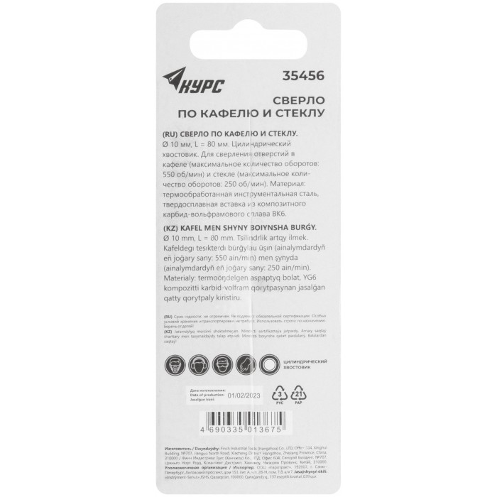Цилиндрический хвостовик. Для сверления отверстий в стекле, кафельной плитке. Материал: инструментальная сталь, твердосплавная вставка. Упаковка: блистер.