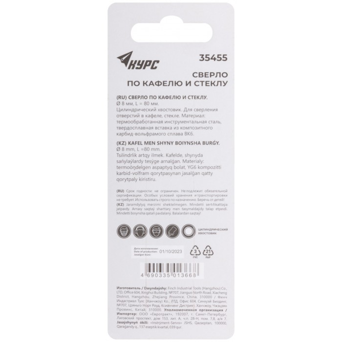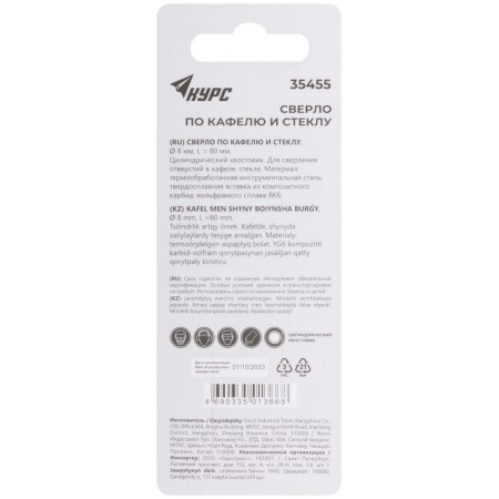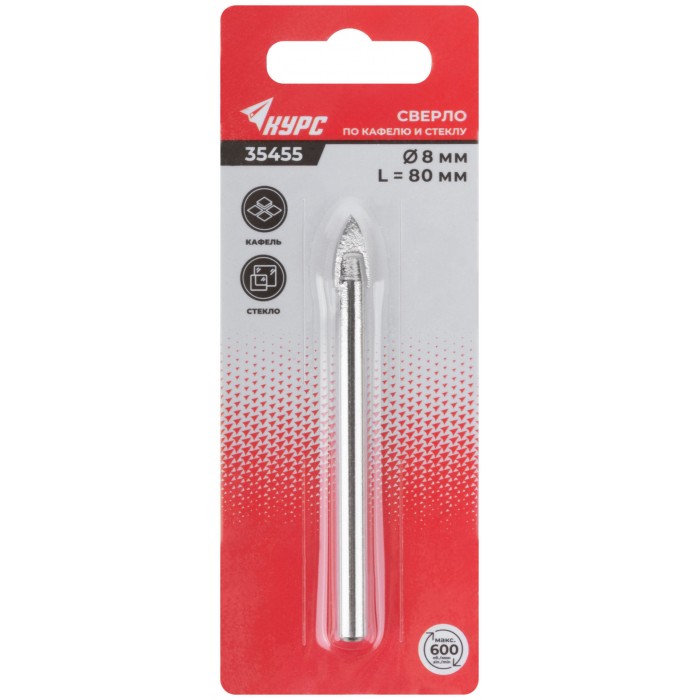 Цилиндрический хвостовик. Для сверления отверстий в стекле, кафельной плитке. Материал: инструментальная сталь, твердосплавная вставка. Упаковка: блистер.