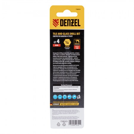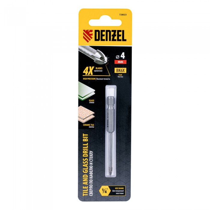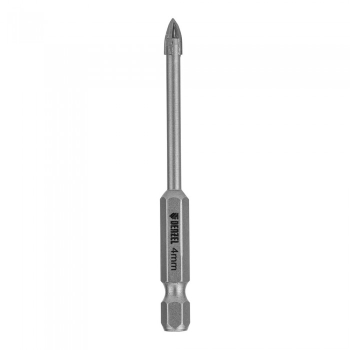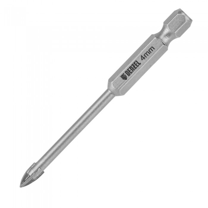 Сверло по керамической плитке 4 мм, крестовая пластина, шестигранный хвостовик// Denzel (728023)