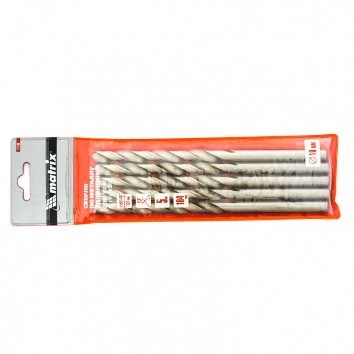 Сверло по металлу, 10 х 184 мм, полированное, удл, HSS, 5 шт, цилиндрический хвостовик Matrix