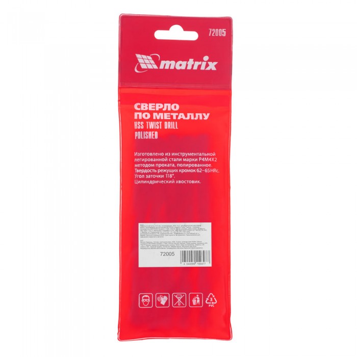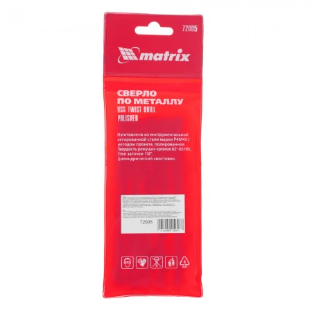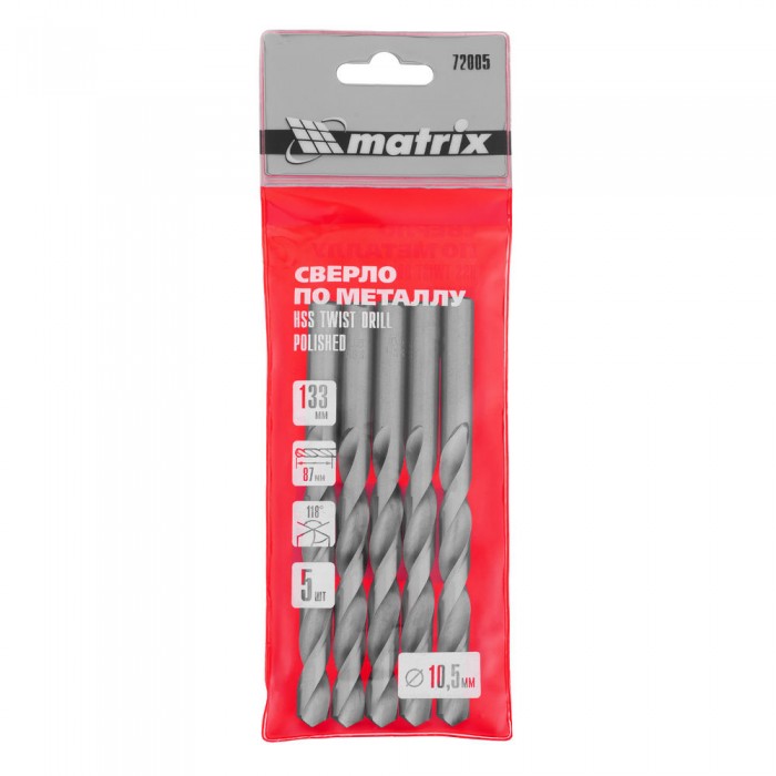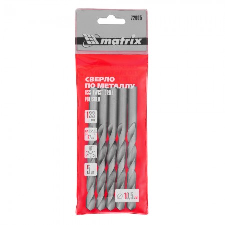 Сверло по металлу, 10.5 мм, полированное, HSS, 5 шт, цилиндрический хвостовик Matrix
