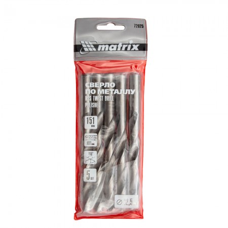 Сверло по металлу, 12.5 мм, полированное, HSS, 5 шт, цилиндрический хвостовик Matrix