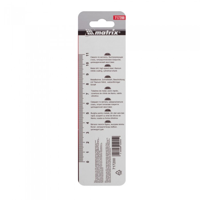 Сверло по металлу, 2 мм, HSS, нитридтитановое покрытие, цилиндрический хвостовик Matrix