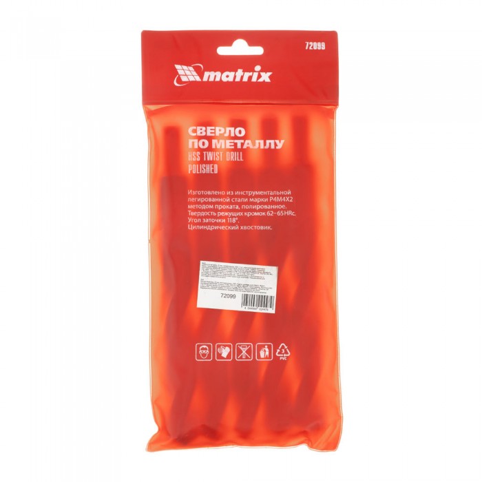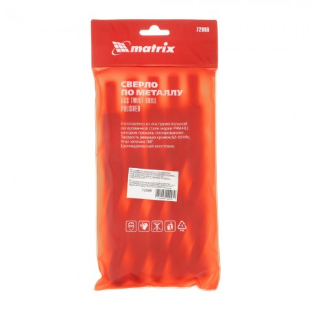 Сверло по металлу, 20 мм, полированное, HSS, 5 шт, цилиндрический хвостовик Matrix
