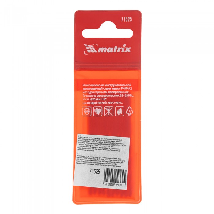 Сверло по металлу, 2.5 мм, полированное, HSS, 10 шт, цилиндрический хвостовик Matrix