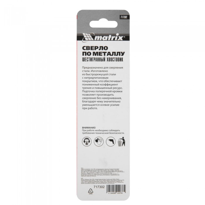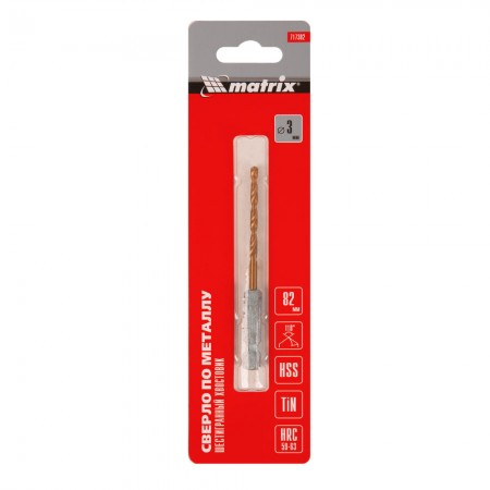 Сверло по металлу, 3 мм, HSS, нитридтитановое покрытие, шестигранный хвостовик Matrix (717302)