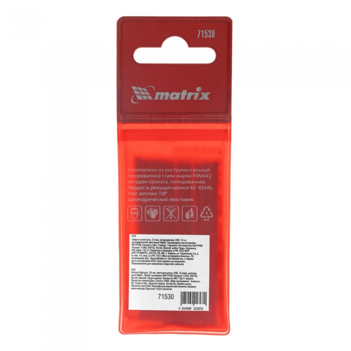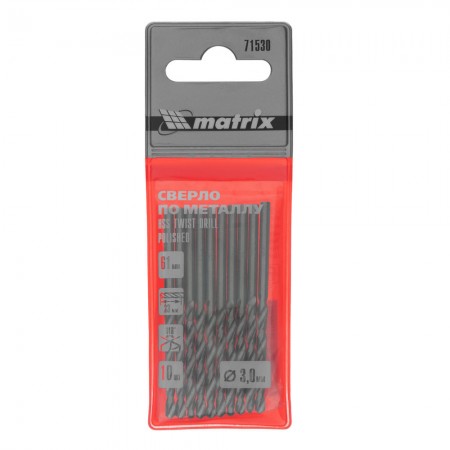 Сверло по металлу, 3 мм, полированное, HSS, 10 шт, цилиндрический хвостовик Matrix