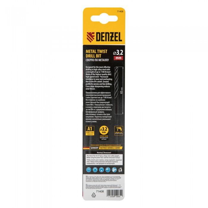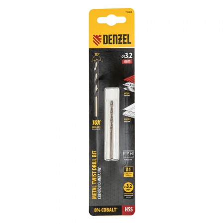 Сверло по металлу, 3,2 мм, HSS Co-8% // Denzel (71408)
