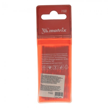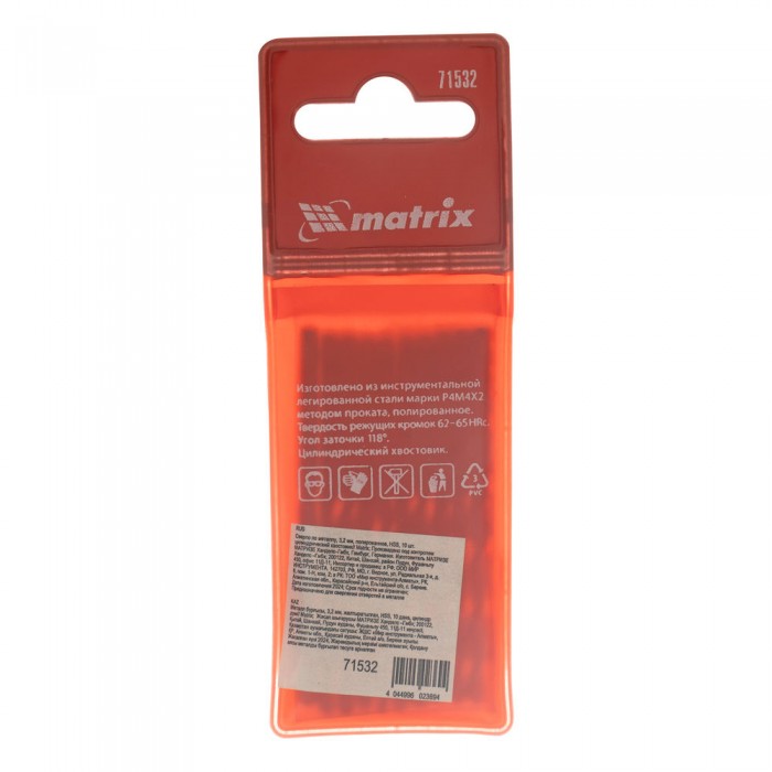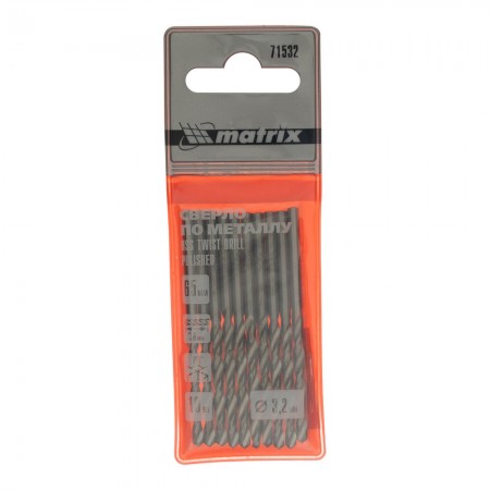 Сверло по металлу, 3.2 мм, полированное, HSS, 10 шт, цилиндрический хвостовик Matrix