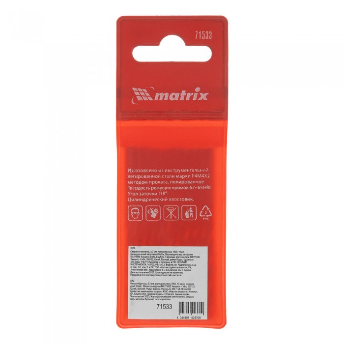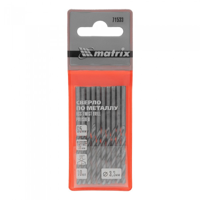 Сверло по металлу, 3,3 мм, полированное, HSS, 10 шт, цилиндрический хвостовик Matrix