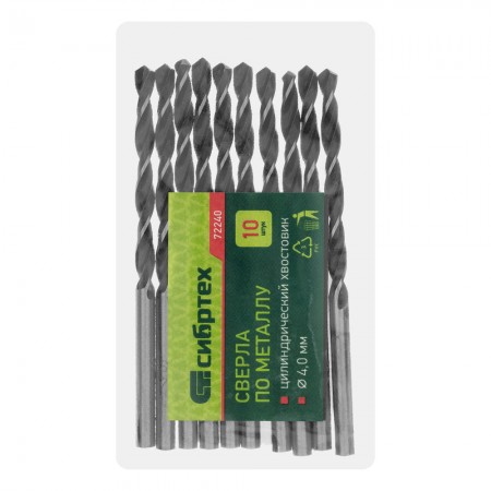 Сверло по металлу, 4 мм, быстрорежущая сталь, 10 шт, цилиндрический хвостовик Сибртех