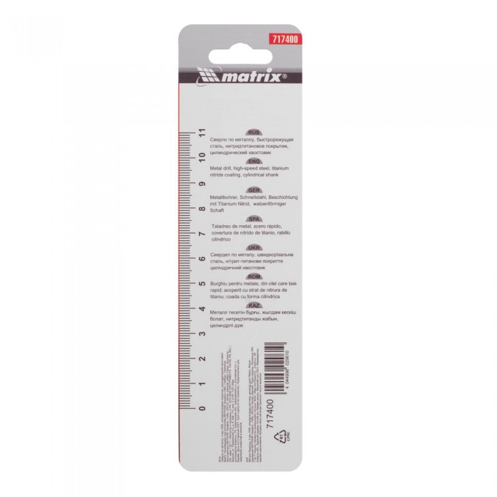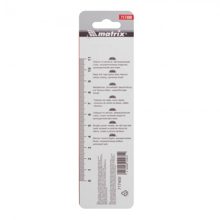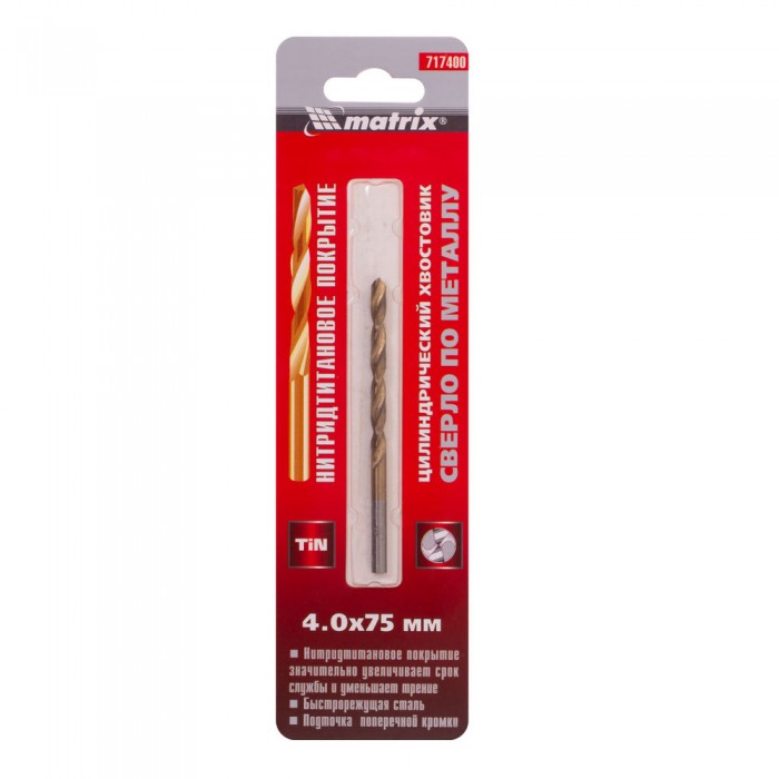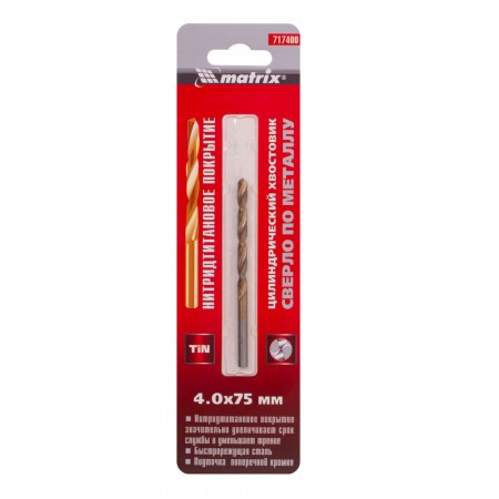 Сверло по металлу, 4 мм, HSS, нитридтитановое покрытие, цилиндрический хвостовик Matrix