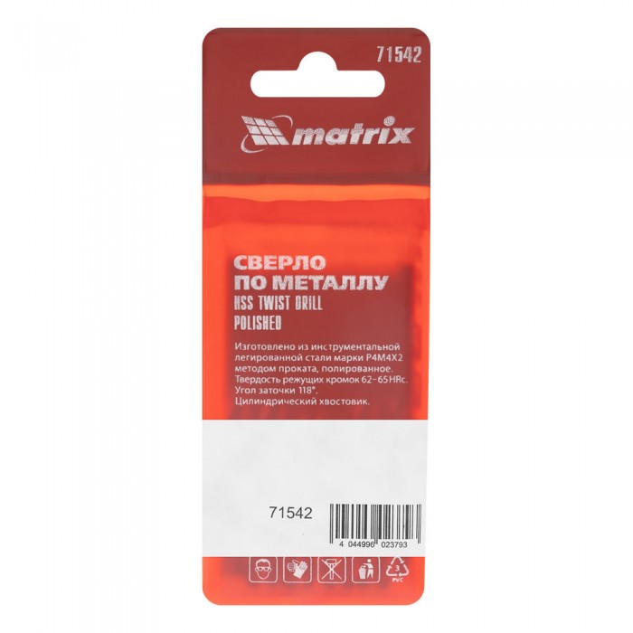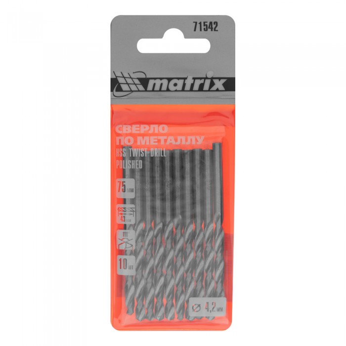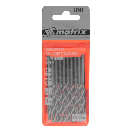 Сверло по металлу, 4.2 мм, полированное, HSS, 10 шт, цилиндрический хвостовик Matrix