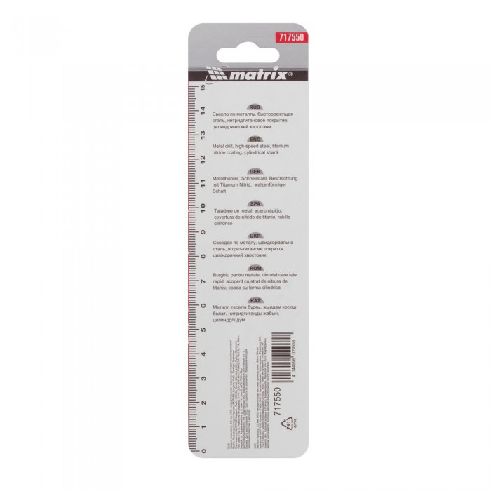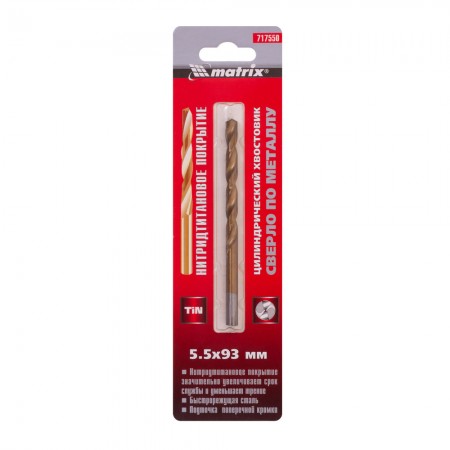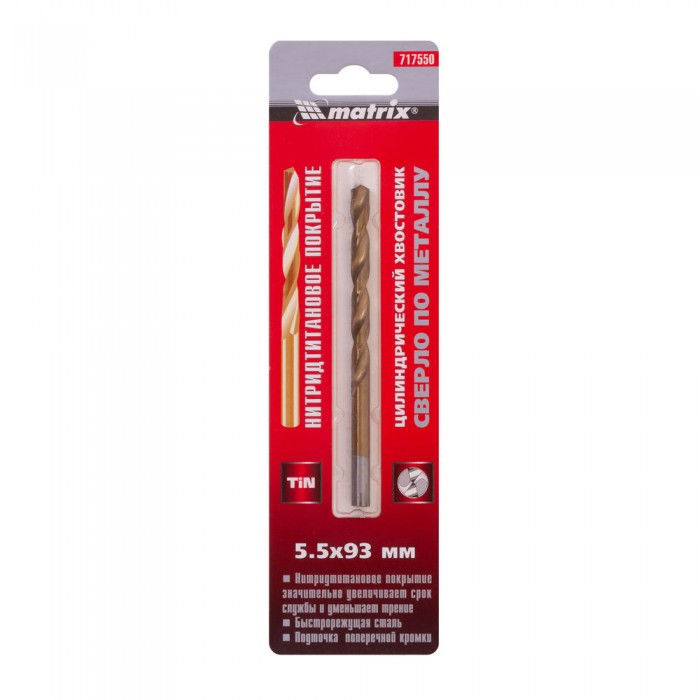Сверло по металлу, 5.5 мм, HSS, нитридтитановое покрытие, цилиндрический хвостовик Matrix