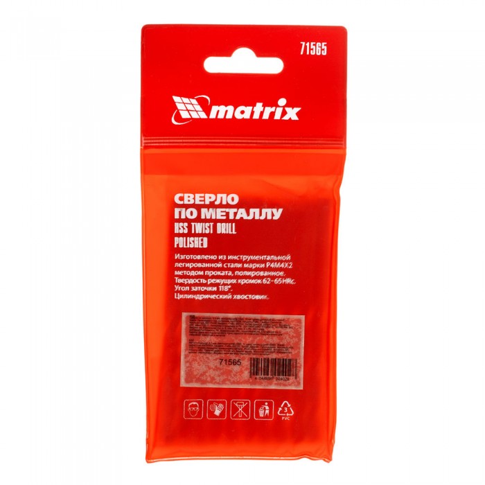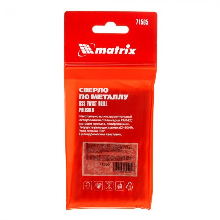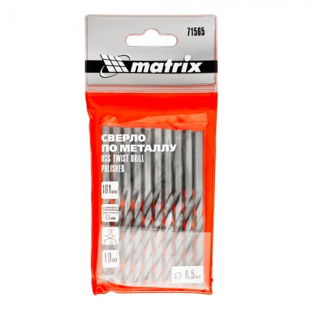 Сверло по металлу, 6.5 мм, полированное, HSS, 10 шт, цилиндрический хвостовик Matrix