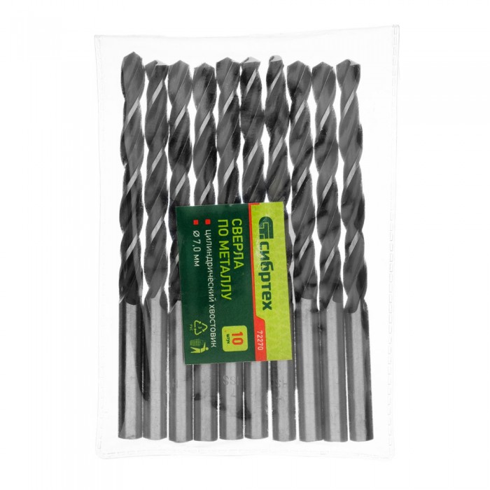 Сверло по металлу, 7 мм, быстрорежущая сталь, 10 шт, цилиндрический хвостовик Сибртех