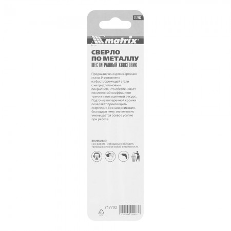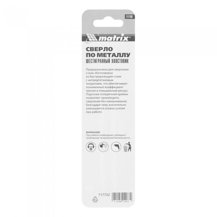 Сверло по металлу, 7 мм, HSS, нитридтитановое покрытие, шестигранный хвостовик Matrix (717702)