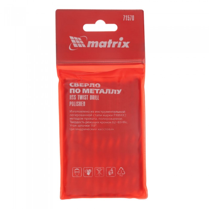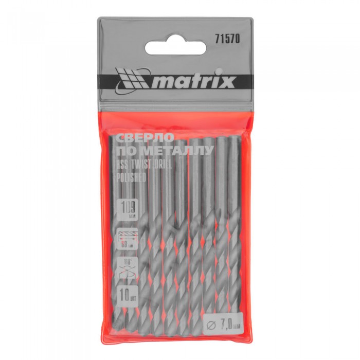 Сверло по металлу, 7 мм, полированное, HSS, 10 шт, цилиндрический хвостовик Matrix