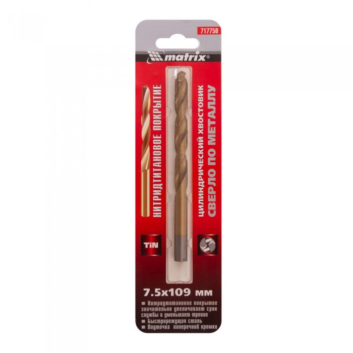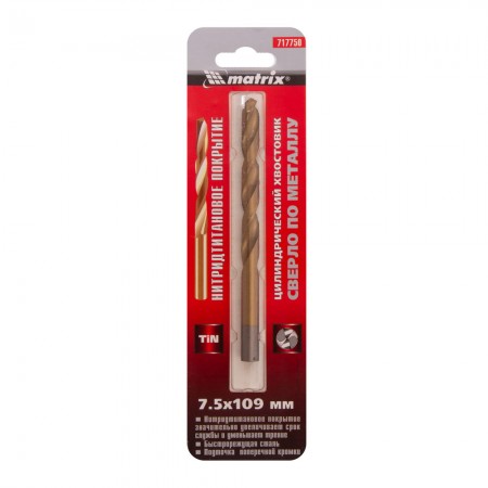 Сверло по металлу, 7.5 мм, HSS, нитридтитановое покрытие, цилиндрический хвостовик Matrix