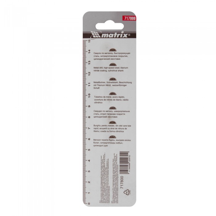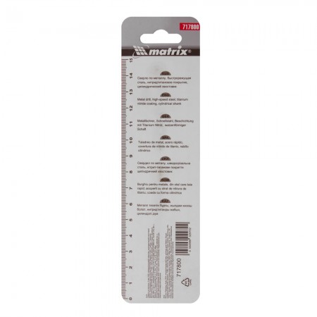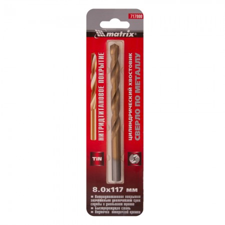 Сверло по металлу, 8 мм, HSS, нитридтитановое покрытие, цилиндрический хвостовик Matrix