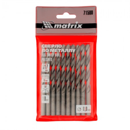 Сверло по металлу, 8 мм, полированное, HSS, 10 шт, цилиндрический хвостовик Matrix