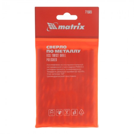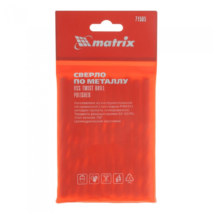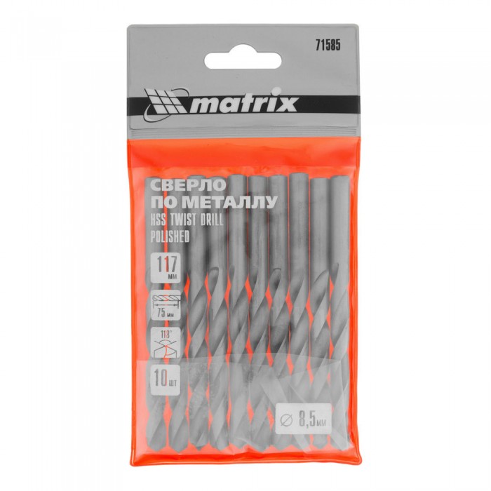 Сверло по металлу, 8.5 мм, полированное, HSS, 10 шт, цилиндрический хвостовик Matrix