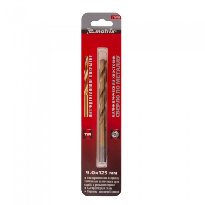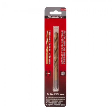 Сверло по металлу, 9 мм, HSS, нитридтитановое покрытие, цилиндрический хвостовик Matrix