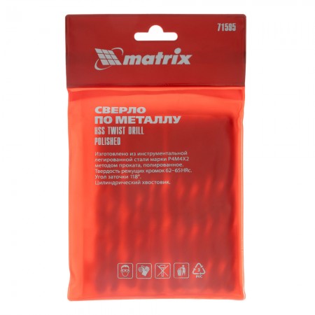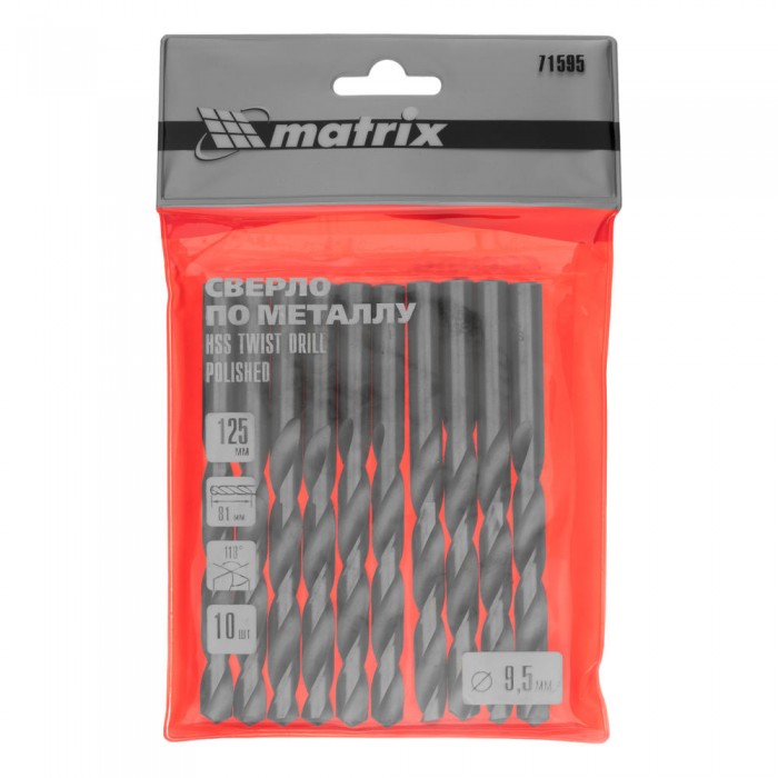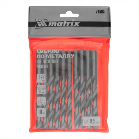Сверло по металлу, 9.5 мм, полированное, HSS, 10 шт, цилиндрический хвостовик Matrix