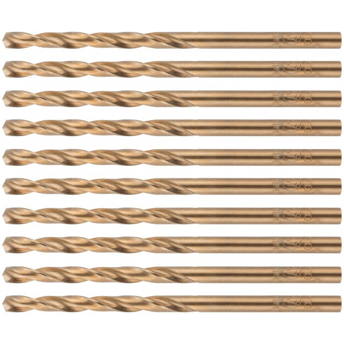 Сверло изготовлено из высококачественной стали типа HSS. Уникальная ступенчатая закалка придает высочайшую твердость режущей кромки и хвостовика сверла, а также способствует повышенной устойчивости к излому. Сверло имеет крестообразный угол заточки 135 градусов, что обеспечивает малое значение биения и позволяет производить точные и одинаковые отверстия. Благодаря сплаву с добавлением 6% Вольфрама и 5% Молибдена сверло способно выдержать высокие емпературы, а 4% Хрома и 2% Ванадия в составе предотвращают коррозию сверла, продлевая срок службы изделия. Предназначено для сверлений отверстий в углеродистых и легированных сталях, серых и ковких чугунах, цветных металлах и пластике. Материал: быстрорежущая сталь. Упаковка: подвесной пластиковый бокс.